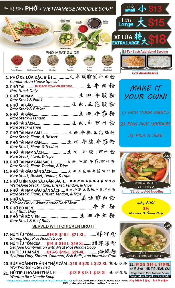 Noteworthy are their creative milkshakes, offering Vietnam-inspired flavors such as Durian, Red Bean, and Vietnamese Coffee, adding a unique twist to traditional desserts. Diners praise the fast, friendly service, clean and spacious interior, and the generous portions that make every meal satisfying. Whether you're craving classic pho or savory stir-fried chow fun, Phở Xe Lua delivers authentic taste with consistent quality and value.